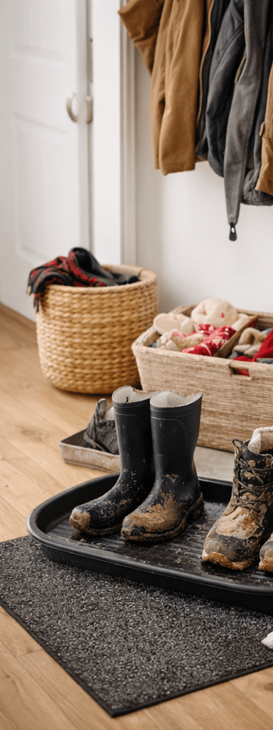 - Shallow bin near the doorEverything wet goes here—no wandering boots.